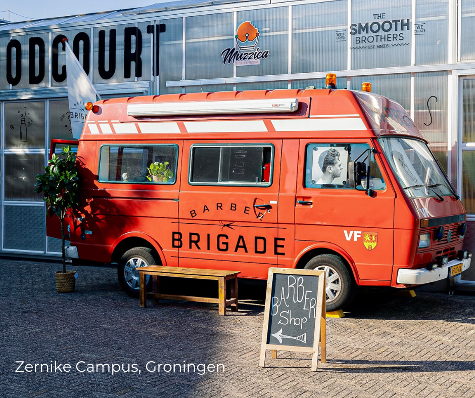 In Groningen (Zernike Campus) staat onze mobiele barbershop, waar brigade is geboren. Waar het leveren van professionele kwaliteit de basis vormt van onze dienst en onze barber Jesse klaar staat om jou te helpen.